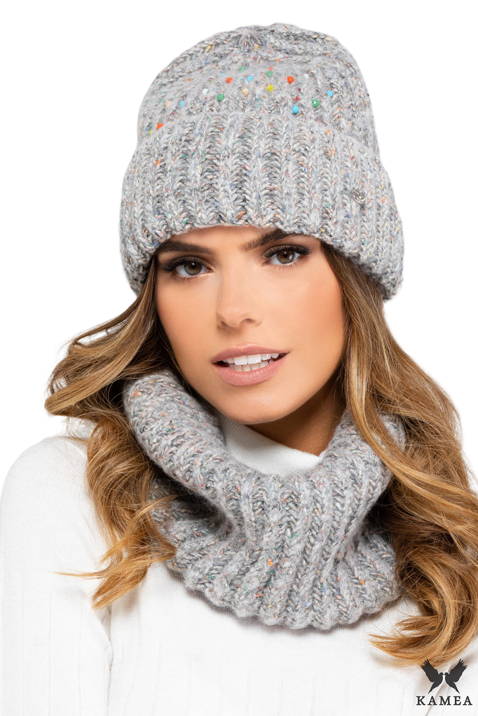 GIJON-KOMPLET zimowy damski czapka z kominem szary jasny