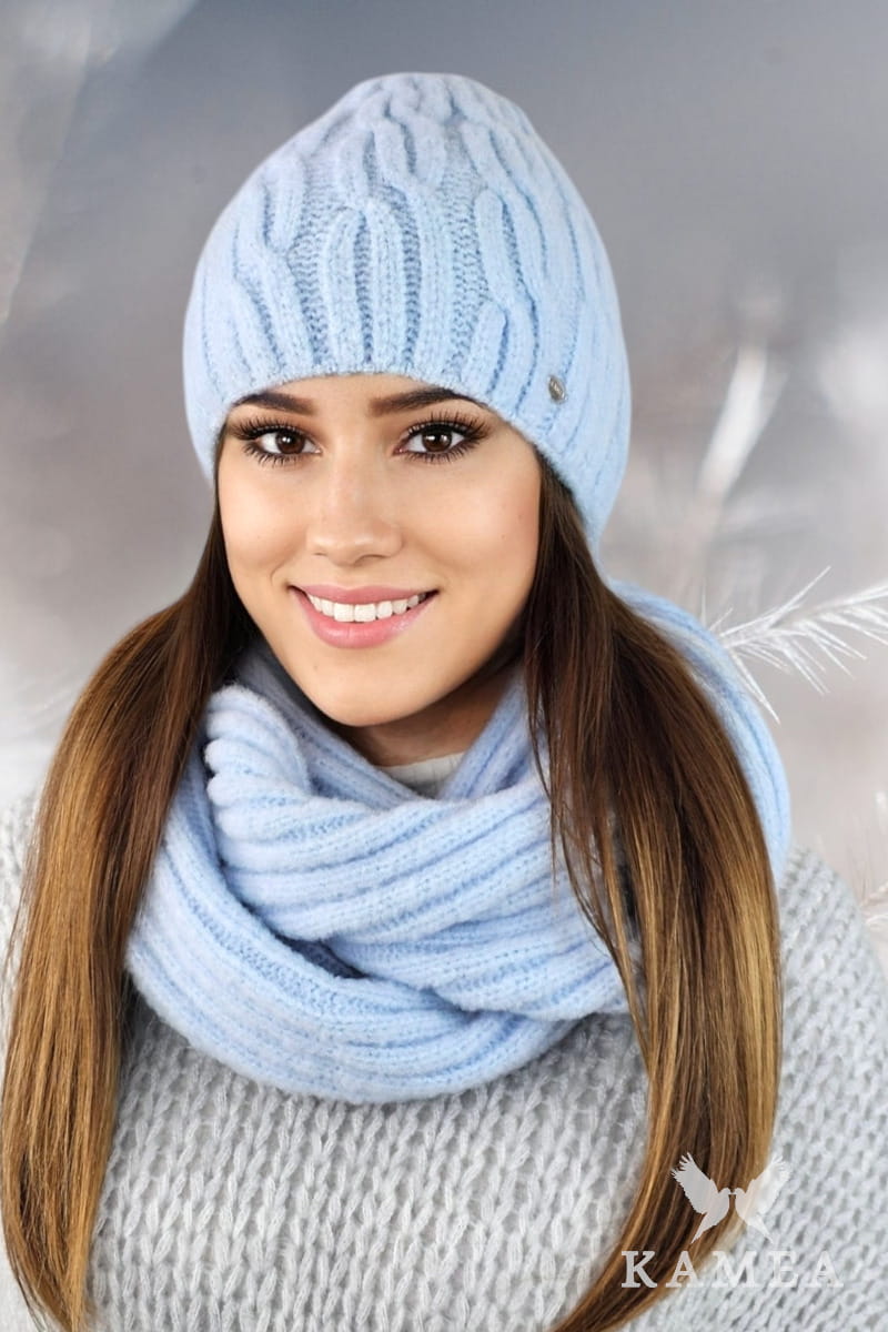 GIZMA puszysty komplet czapka z kominem kolor błękitny