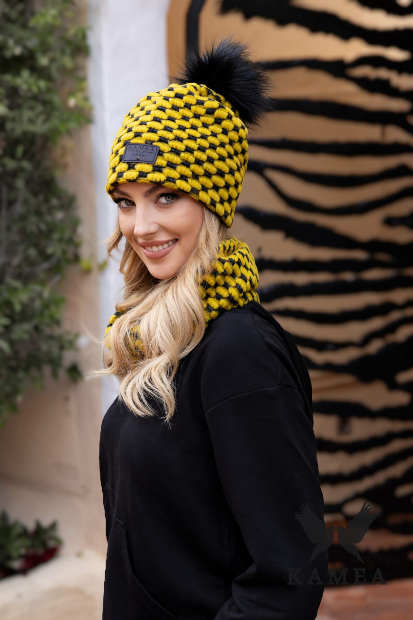 IMELDA zimowy komplet na polarze czapka z kominem kolor miodowy