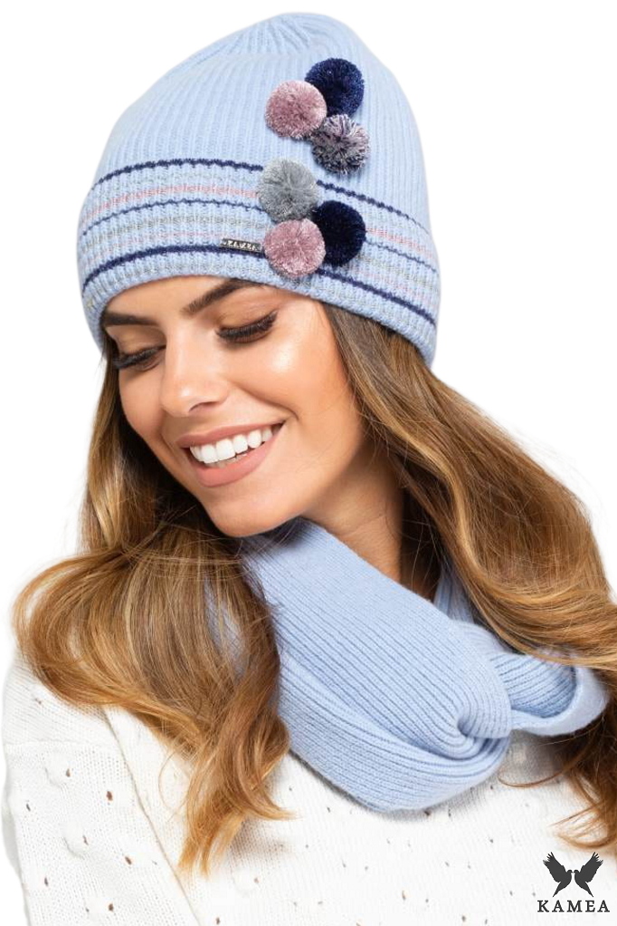KOLORADO-KOMPLET młodzieżowy wełniany czapka z kominem błękitny