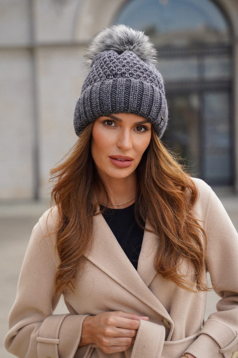 Zimowa Czapka Damska Kolor Grafitowy Kamea-Furja Z Eco Pomponem